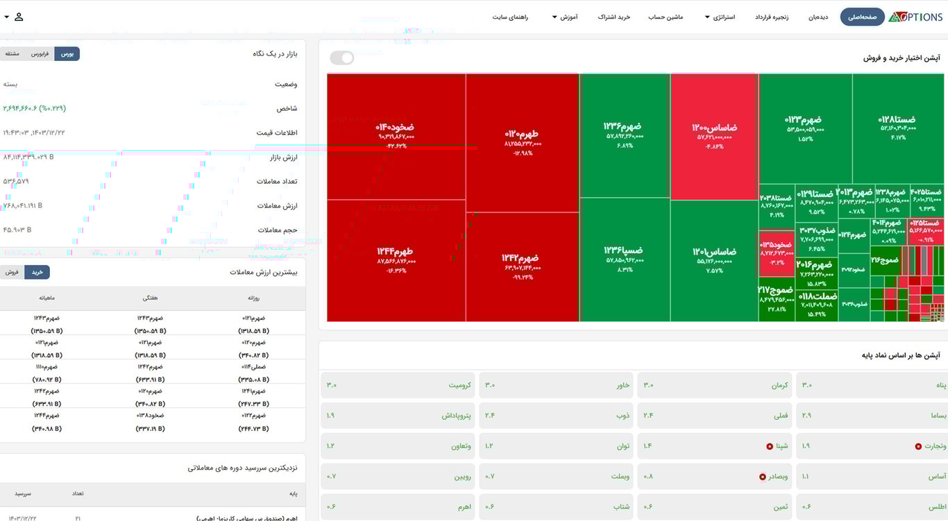 Option24 is a specialized platform providing comprehensive data, strategies, and insights for options trading in the Iranian financial market. Developed by Bourse24, this platform enables investors to explore risk management strategies, analyze market trends, and enhance their decision-making in derivatives trading.